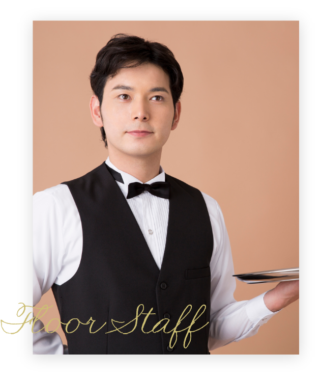 - ドリンクや料理の提供、お客様の受付、お席までのエスコートなどのホール業務をお任せしていきます